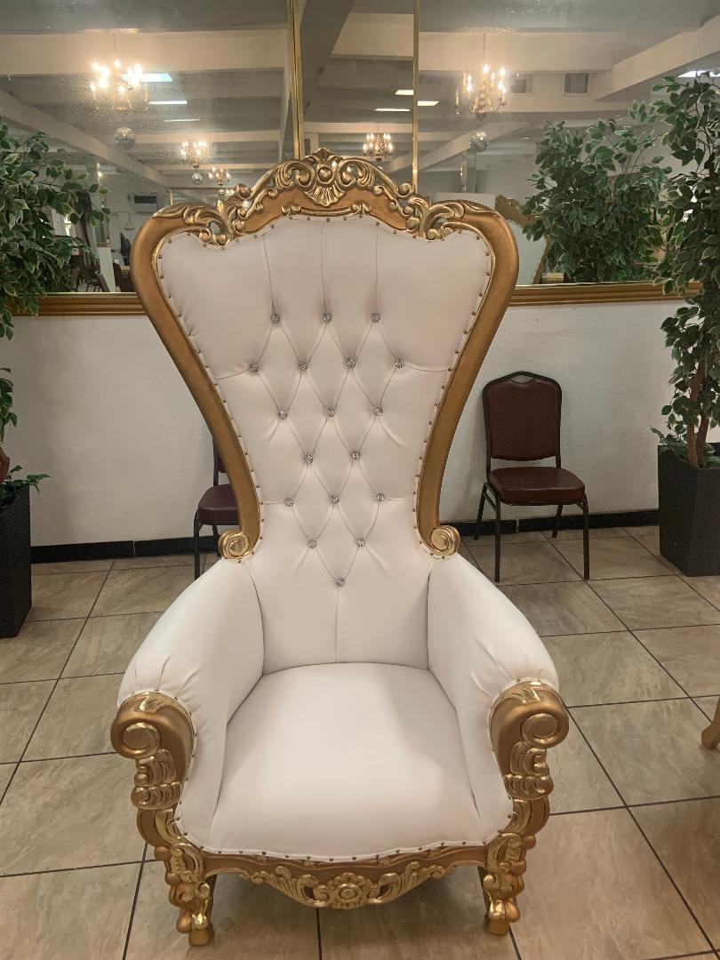 These beautiful white with gold trimming royal chairs are the go to for any event. Perfect for baby showers, weddings, or any event where you would like to feel like a princess or queen or even an king for the day. Availability is limited, Book now !